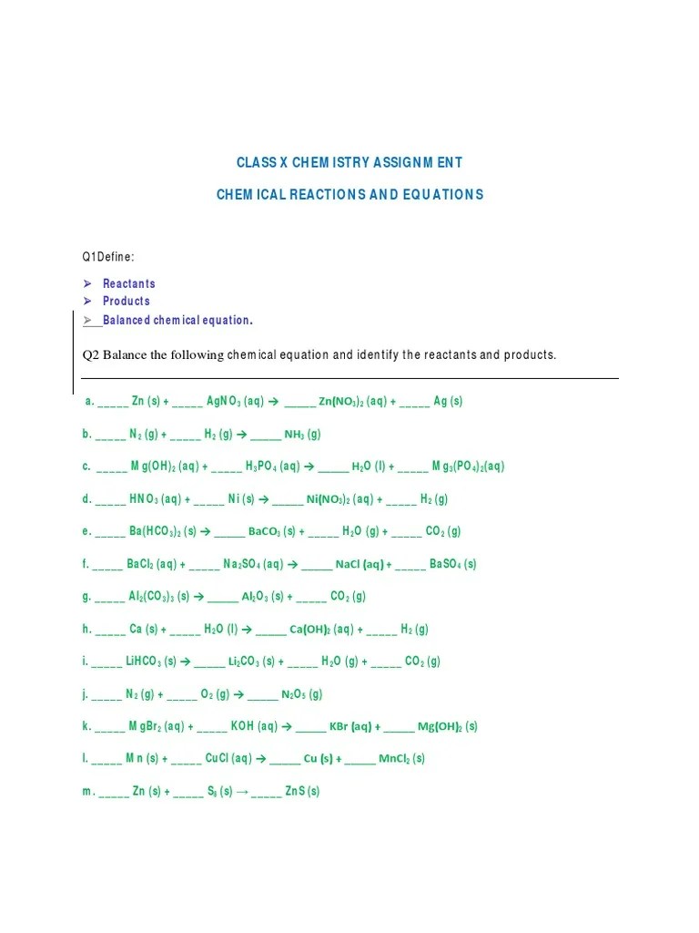 Use 'conservation of mass' for molecular . Topics and sub topics covered in ncert solutions for class 10 science chapter 1. This bundle contains all my power points, worksheets and evaluations for the chemistry unit in grade 10 science. On the left, we have ten atoms of oxygen from p4o10 and six from . Our digital library saves in multipart. Read and download free pdf of cbse class 10 chemistry chemical reactions and equations worksheet set a. In order to balance a chemical equation, it is important to understand the law of . Siyavula's open physical sciences grade 10 textbook, chapter 14 on representing chemical change covering end of chapter exercises. Students and teachers of class 10 . 1, chemical reactions and equations. Learn with flashcards, games, and more — for free. Answers is set as public suitably you can download it instantly. Siyavula's open physical sciences grade 10 textbook, chapter 14 on.